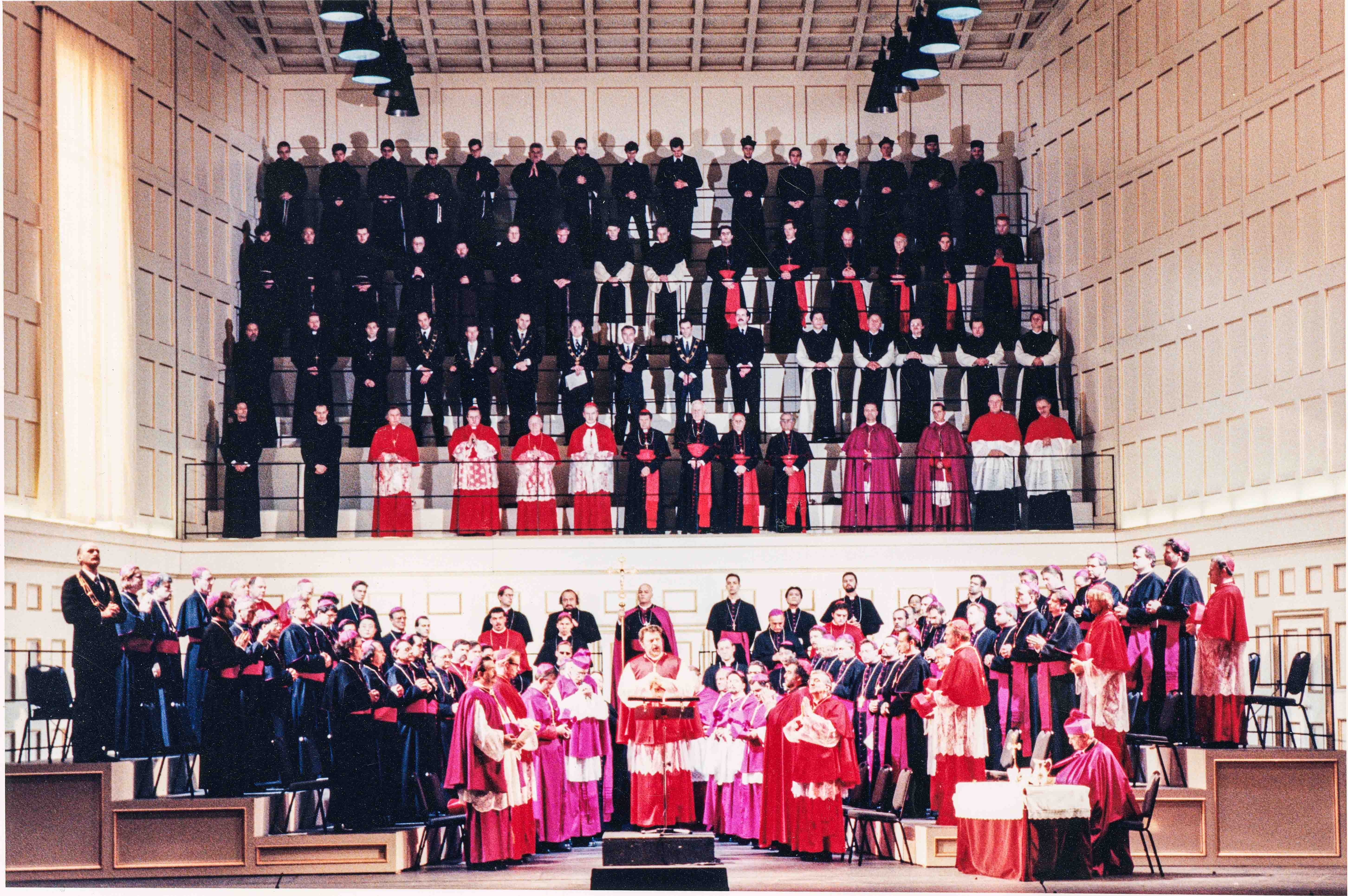 At the Tridentine Council, the parties clash again and Borromeo puts them off with regard to the mass. In order to save his father, who was thrown into prison, Ighino gives the composition to the college. The mass is performed in the papal chapel and deeply impresses the Pope. Palestrina is released and the Pope honors him personally. In the end, Palestrina is left alone and realizes that his life's work is complete.