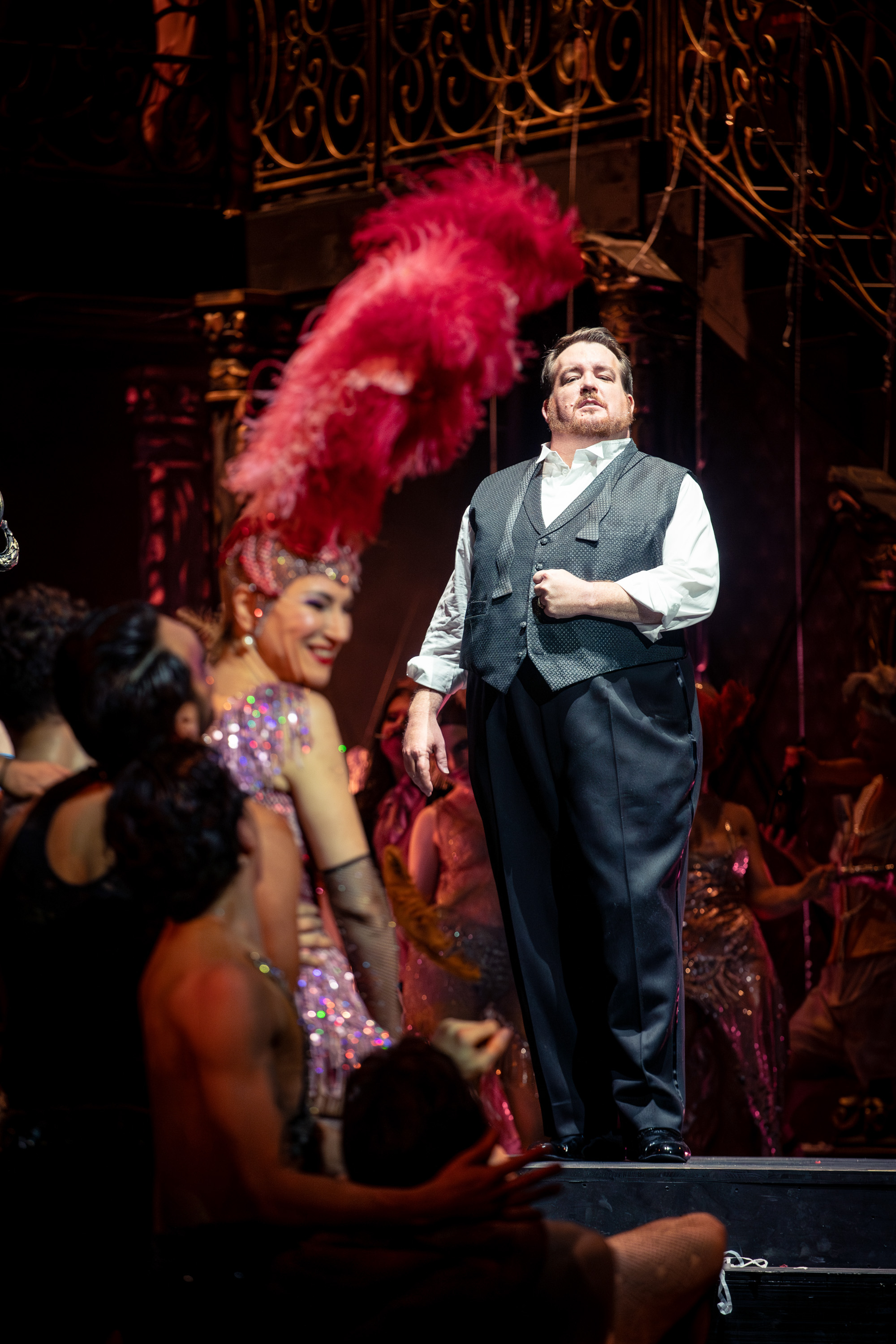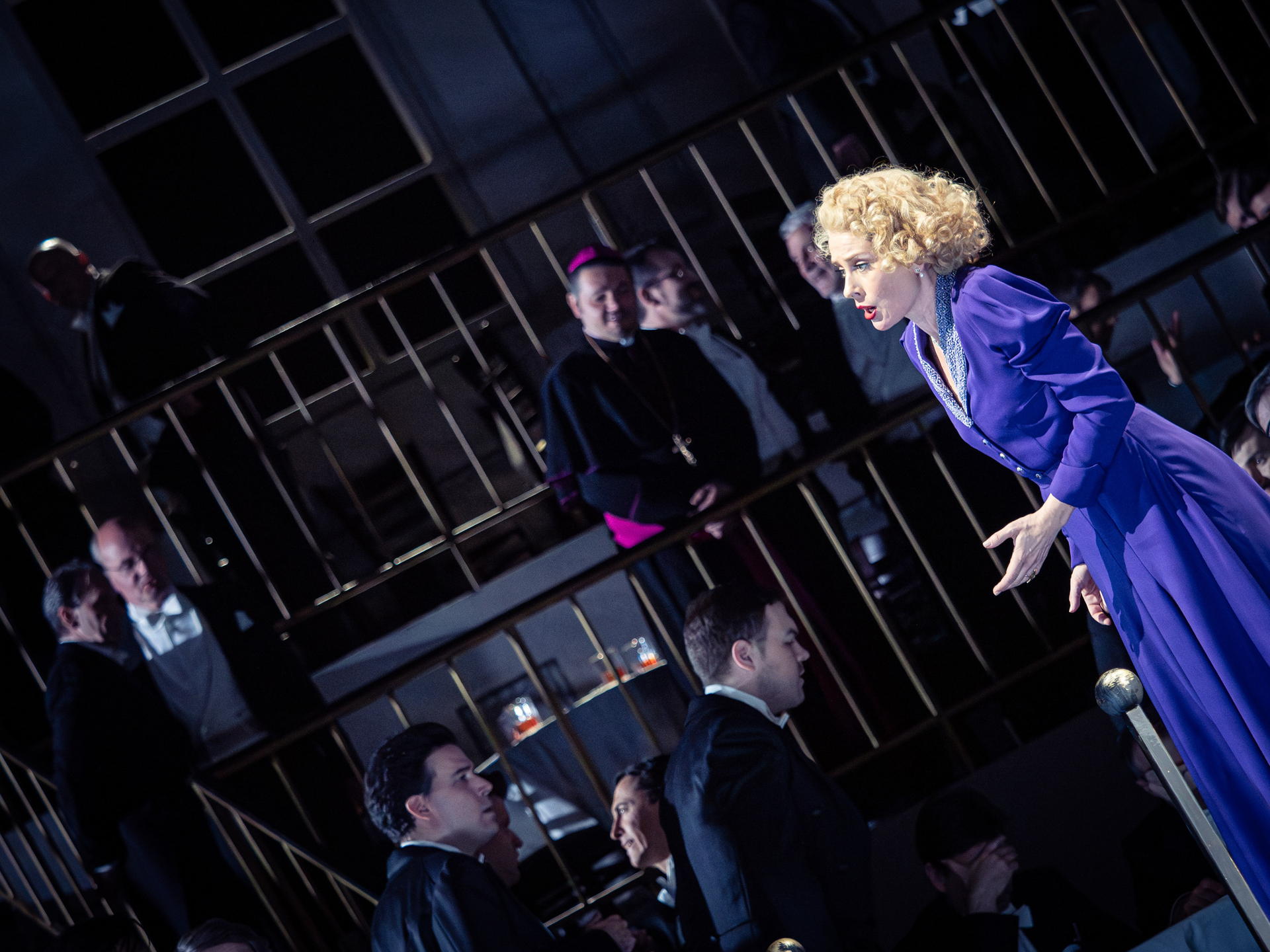 Lydia Steiers Inszenierung zeigt uns drei Welten: Eine schillernde Varieté-Atmosphäre, in der Venus beheimatet ist – der 1. Aufzug. Dann die kalte, restriktive Wartburg-Welt (2. Aufzug) und eine illusionslose Medienlandschaft im dritten Aufzug. Als zweite Ebene fügt Steier eine Theater-Zeitreise ein: Beim Kult, der Publikum vom Zuschauenden nicht trennt, beginnt es, dann führt der Weg zum sinnlichen Barocktheater und landet in der klassischen getrennten Zuschauer-Darsteller-Situation; schließlich führt Steier uns in eine Landschaft, in der die Vereinzelung um sich gegriffen hat und blinkende Bildschirme die Aufmerksamkeit auf sich ziehen. Bis sie in den letzten Augenblicken den Bogen zum barocken Theater zurückschlägt.