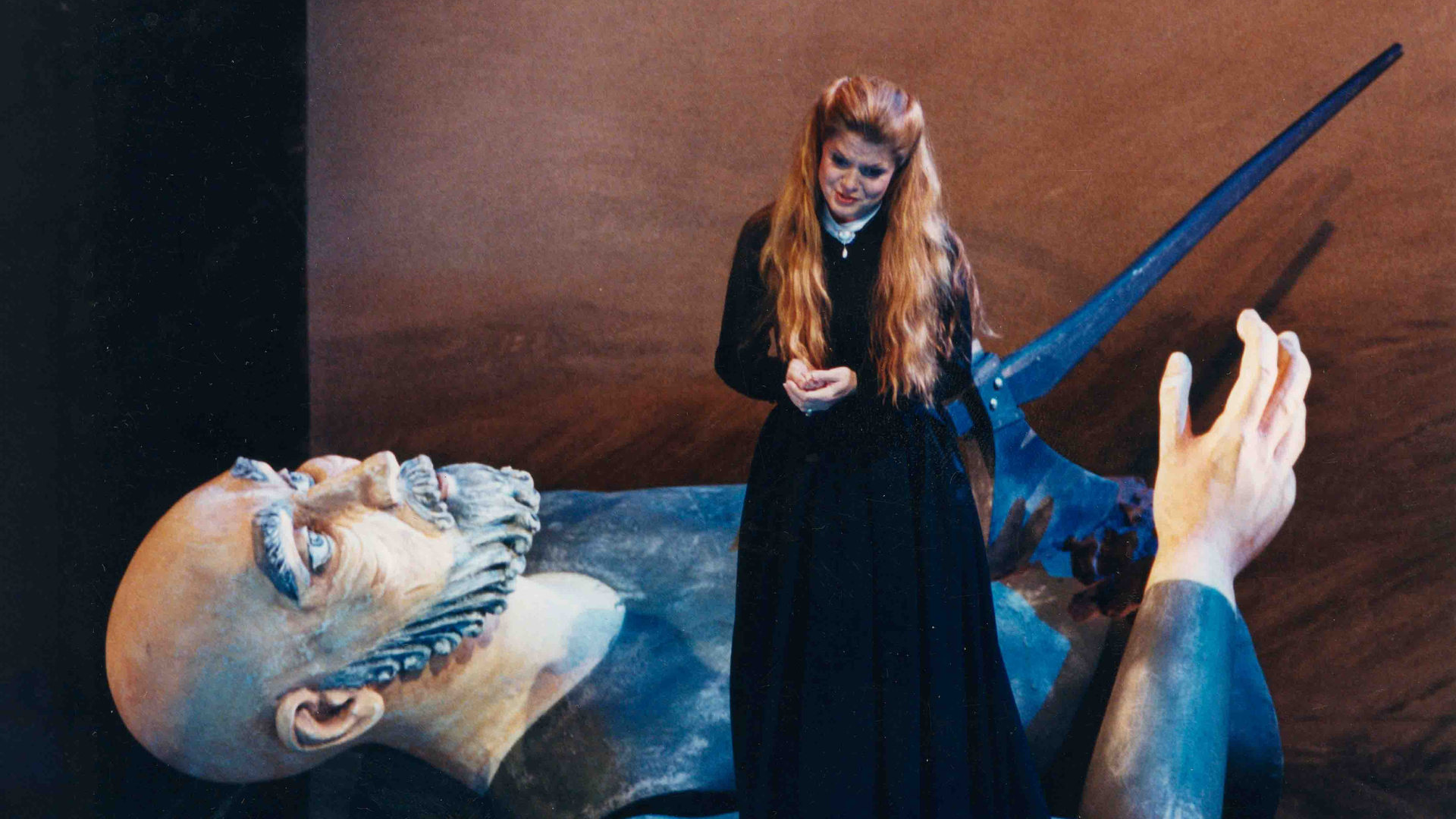 Der britische Regisseur David Pountney übernahm die Inszenierung. In seiner Interpretation setzte er auf eine symbolhafte Bildsprache und parodierte gezielt folkloristische Elemente. Pountney arbeitete mit Maßstabkontrasten und schuf zwei mehrere Meter hohe Riesenpuppen, die als Überelternpaar die Verbundenheit der Gemeinschaft gegen die Fremdherrschaft symbolisieren. Diese Inszenierung führt von der scheinbaren Idylle zu Chaos und Kampf, bis zum versöhnlichen Schlussbild mit einer Miniaturdorflandschaft und dem kathartischen Hymnus.